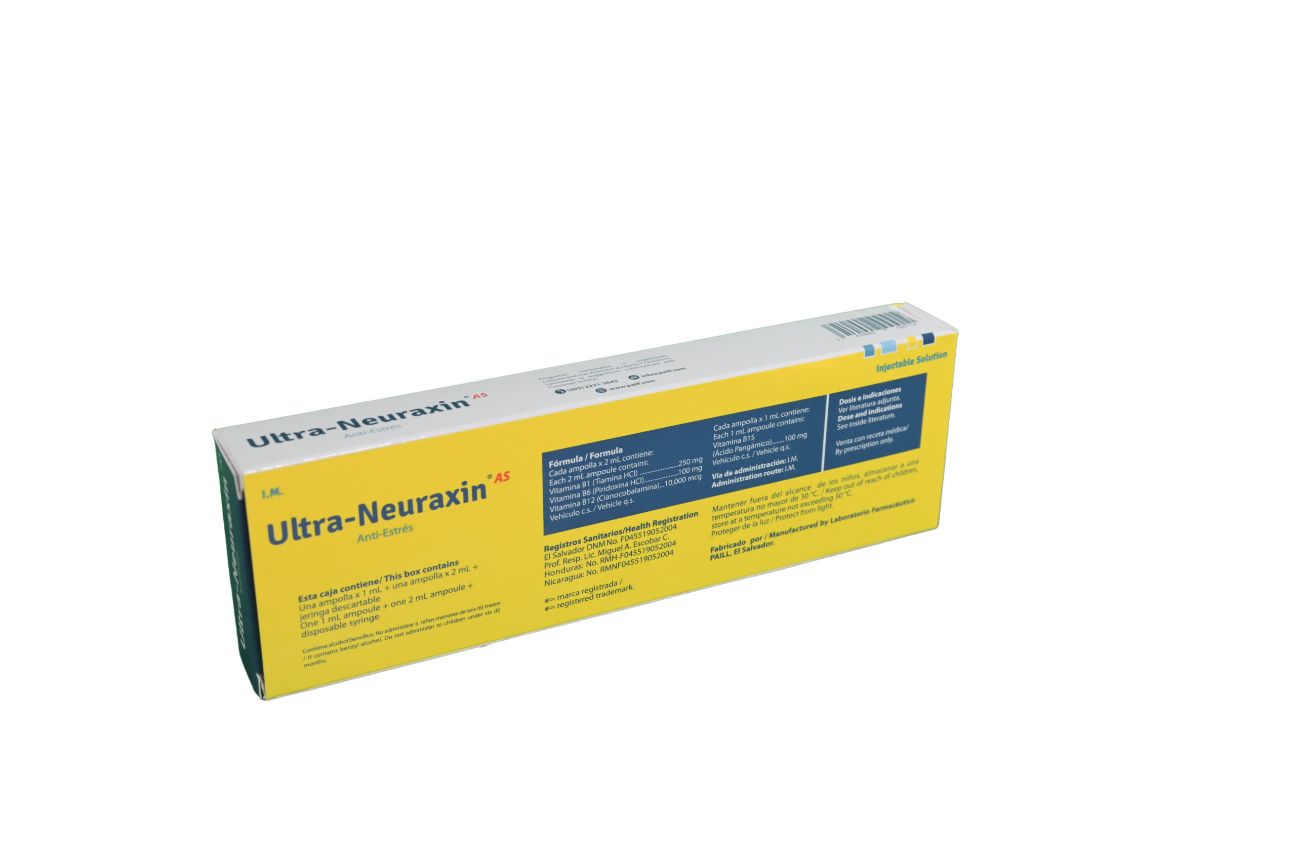 Presentation: B X 1 VIAL/ 10ML Components: Ampule 1: Vitamin B12 10,000 mcg, Vitamin B1 250mg, Vitamin B6 100mg Ampule 2: Vitamin B15 100mg